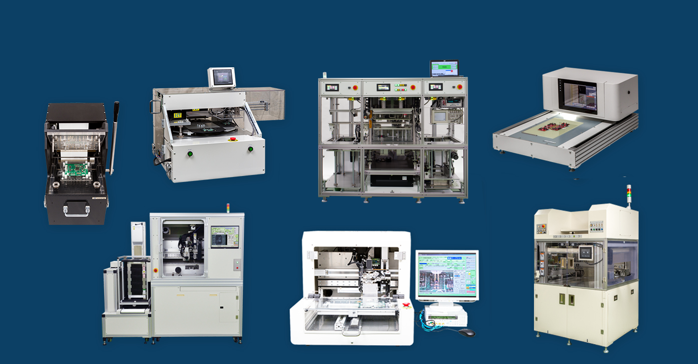 500Pinピンから2000Pinでプレス圧が100kgを超える検査治具に対応。プレス単機能のものと、基板取り出し位置移動機能付き、ICTとFCTの異なるプレス高さの自動位置決めが出来る機能も用意。